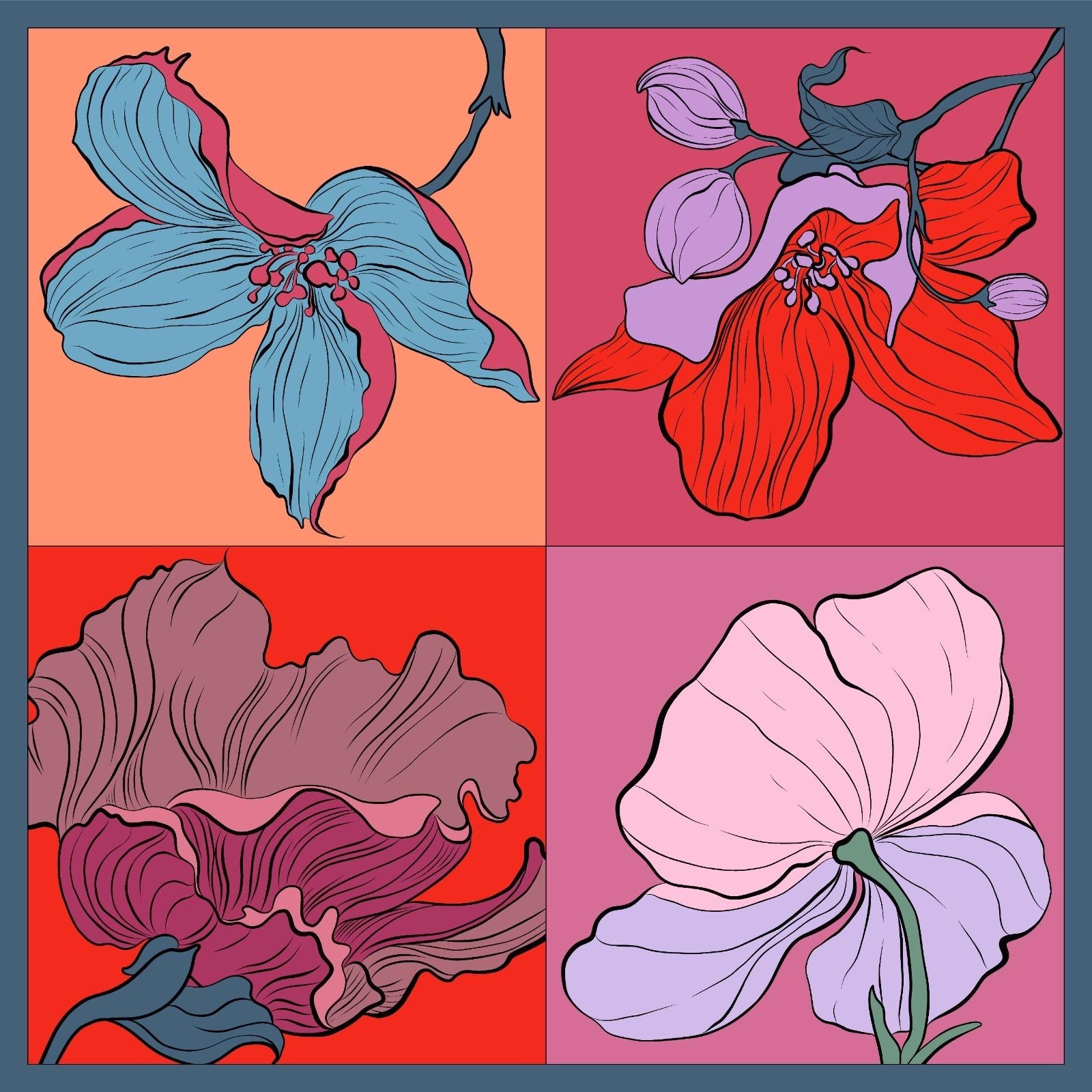 Electric Bloom Scarf (Square Scarf + Pretied)